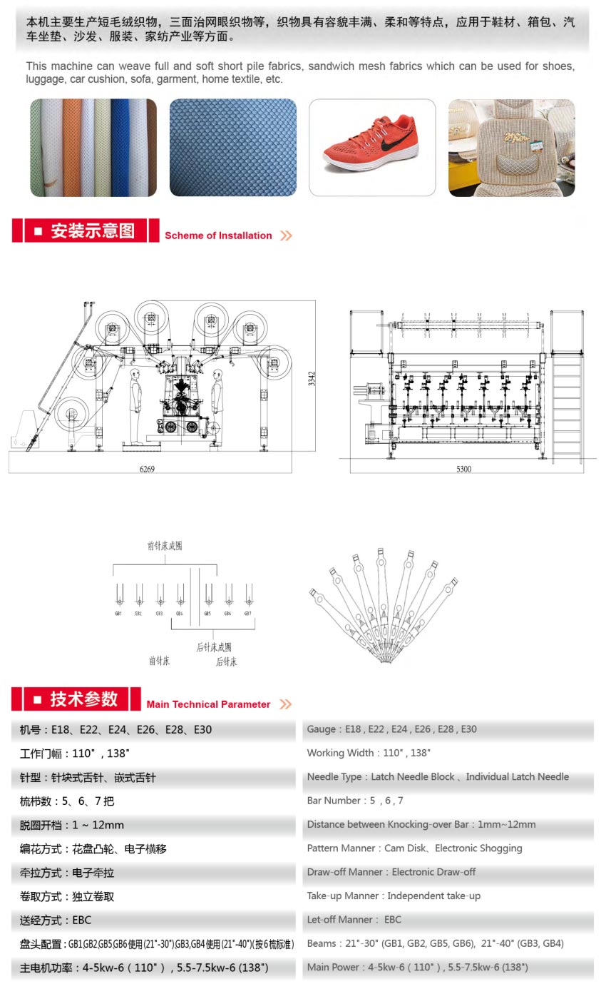 SGE2295(RD)短绒高速双针床经编机